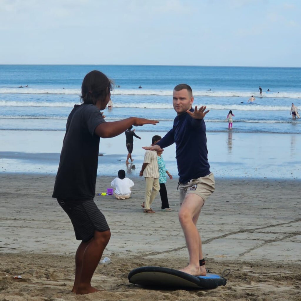 A fun and friendly surf lesson designed for beginners who want to learn the basics of surfing together in a group. Perfect for first-time surfers who want to enjoy the waves of Kuta Beach in a safe and supportive environment